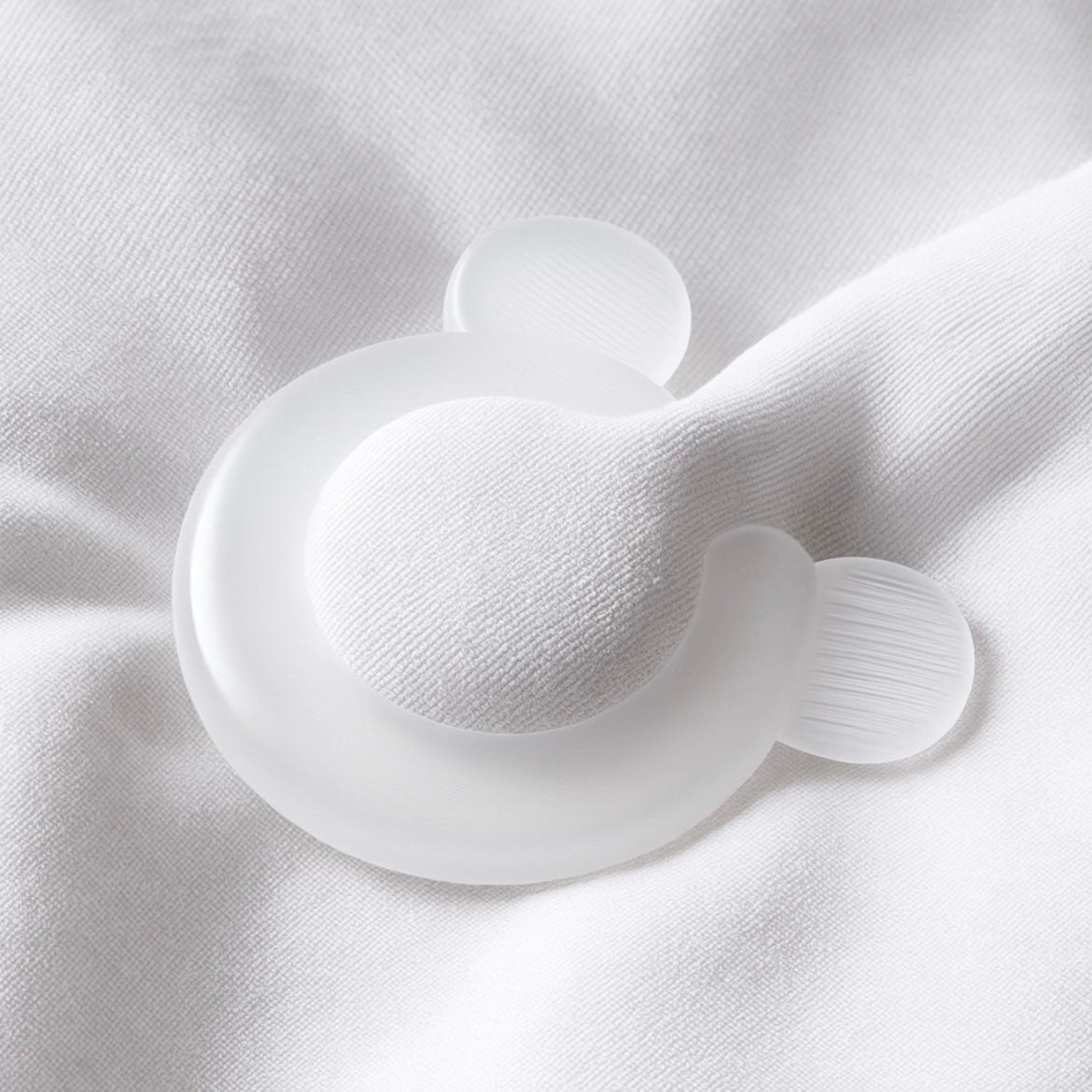 Vår täck- klämma är den perfekta lösningen för att hålla ditt täcke stilla inuti påslakanet. Den är tillverkad i transparent, slitstarkt silikon/gummi, vilket gör att den smälter in oavsett färg på dina sängkläder. Med sin starka, halksäkra design greppar den effektivt utan att repa eller skada tyget. Lätt att applicera – bara kläm runt täckets kant och du är klar. Sova lugnare och vakna med ett prydligt täcke varje morgon.